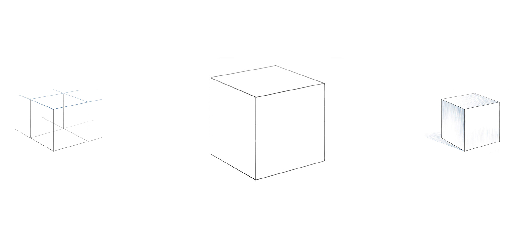 It's time to give the cube drawing a more finished look. Erase the auxiliary lines and make the main lines clear and realistic.